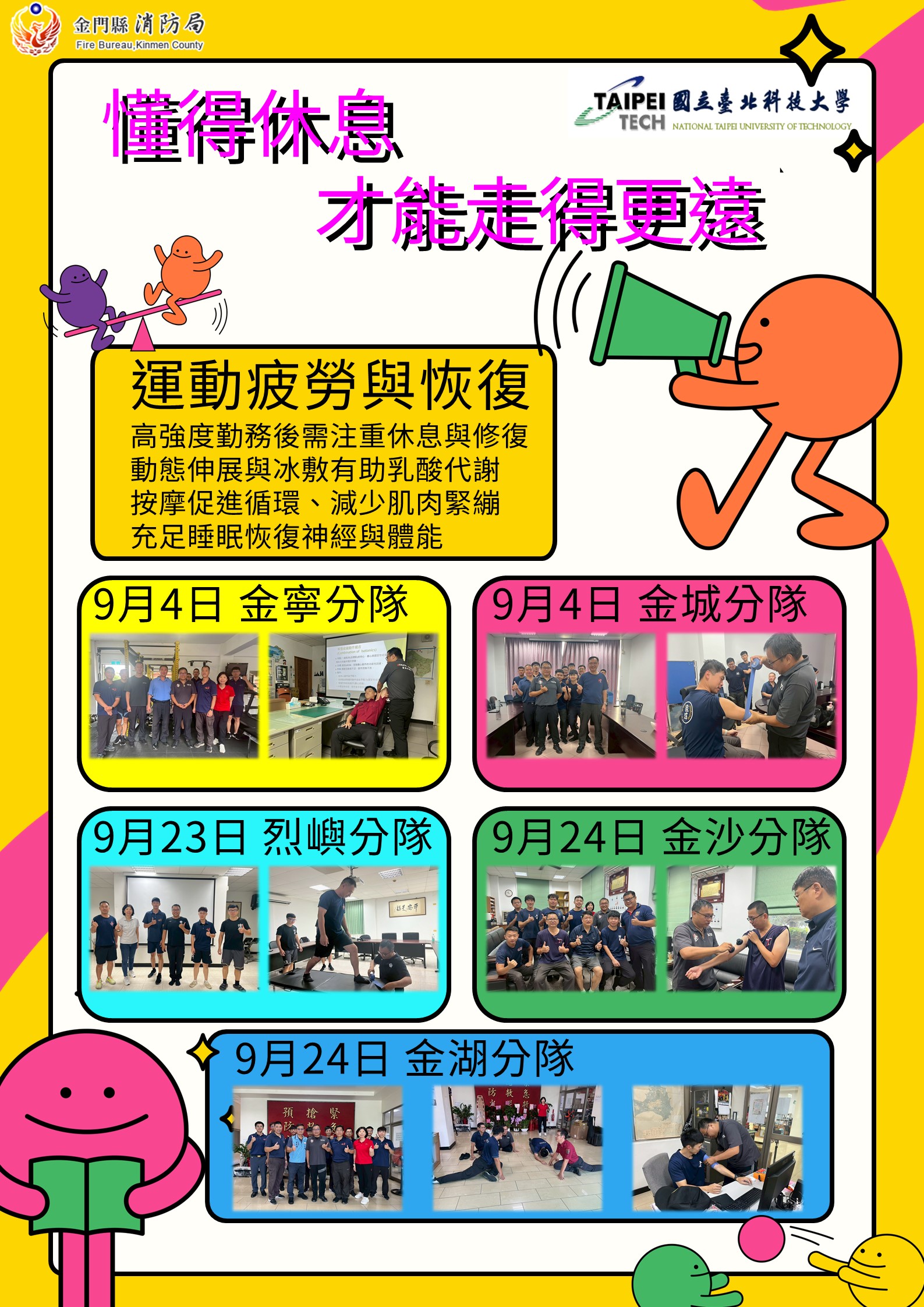 未來本局將持續推動相關健康促進與安全防護課程,從日常照護著手,提升消防人員的身心健康,讓「懂得休息,才能走得更遠」成為消防文化的一部分。